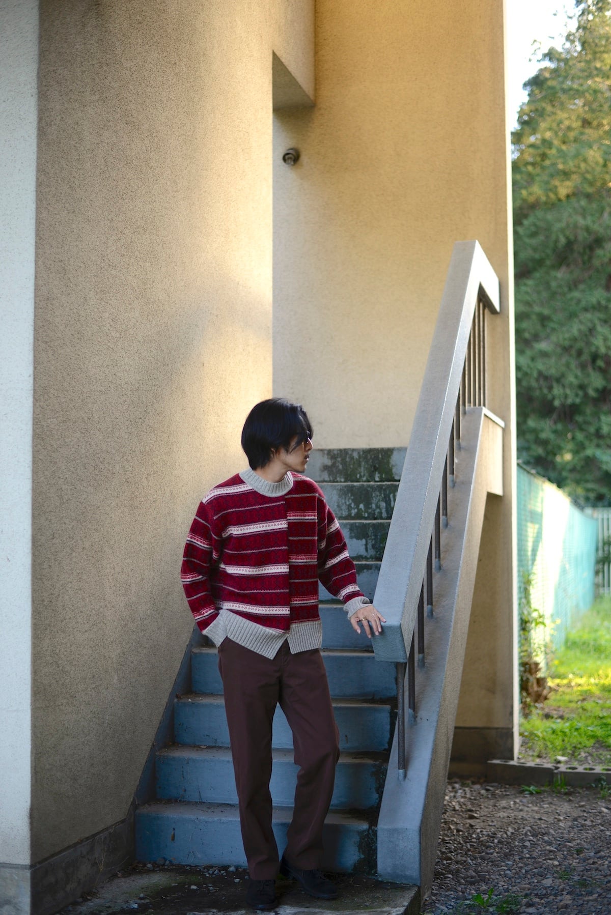 Ex.Nikki ESSENTIAL PIECES / wool / cashmere crazy pattern Nordic Crewneck (red mix)