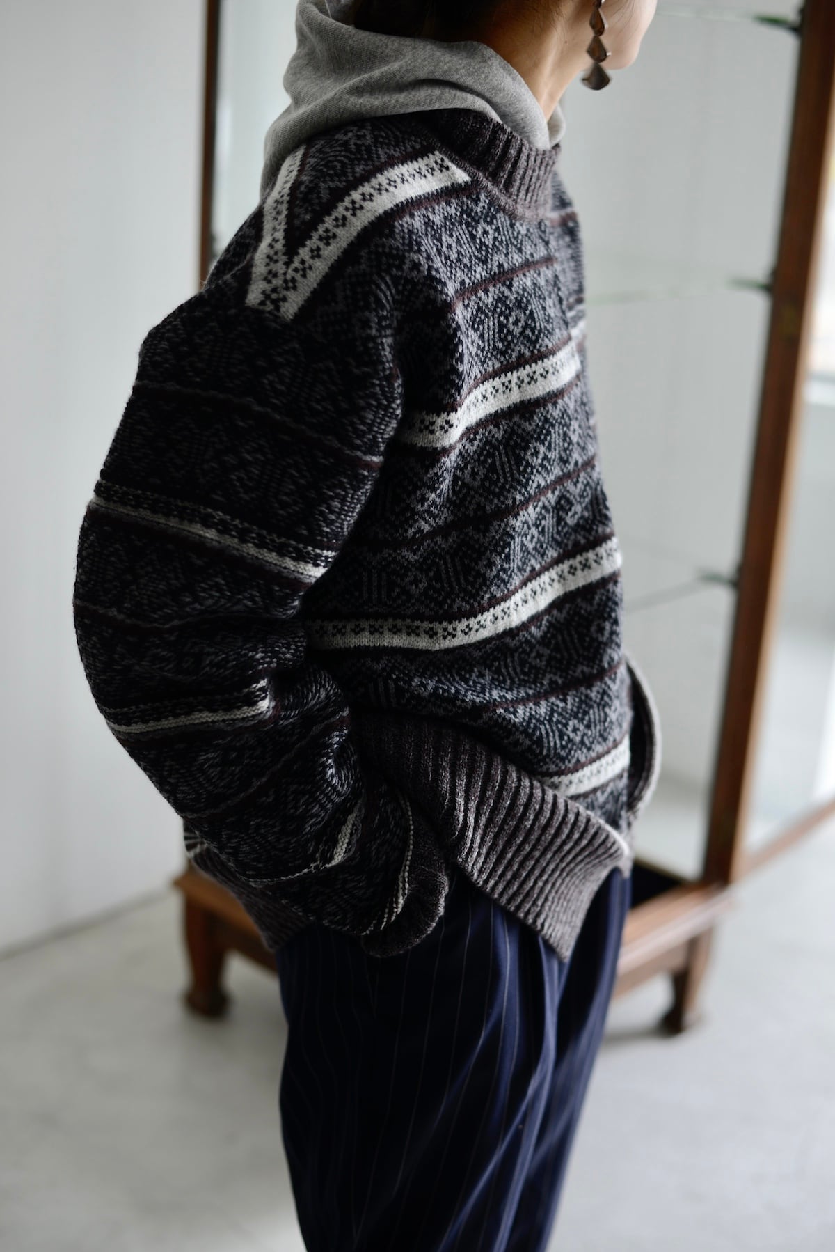 Ex.Nikki ESSENTIAL PIECES / wool / cashmere crazy pattern Nordic Crewneck(black mix)