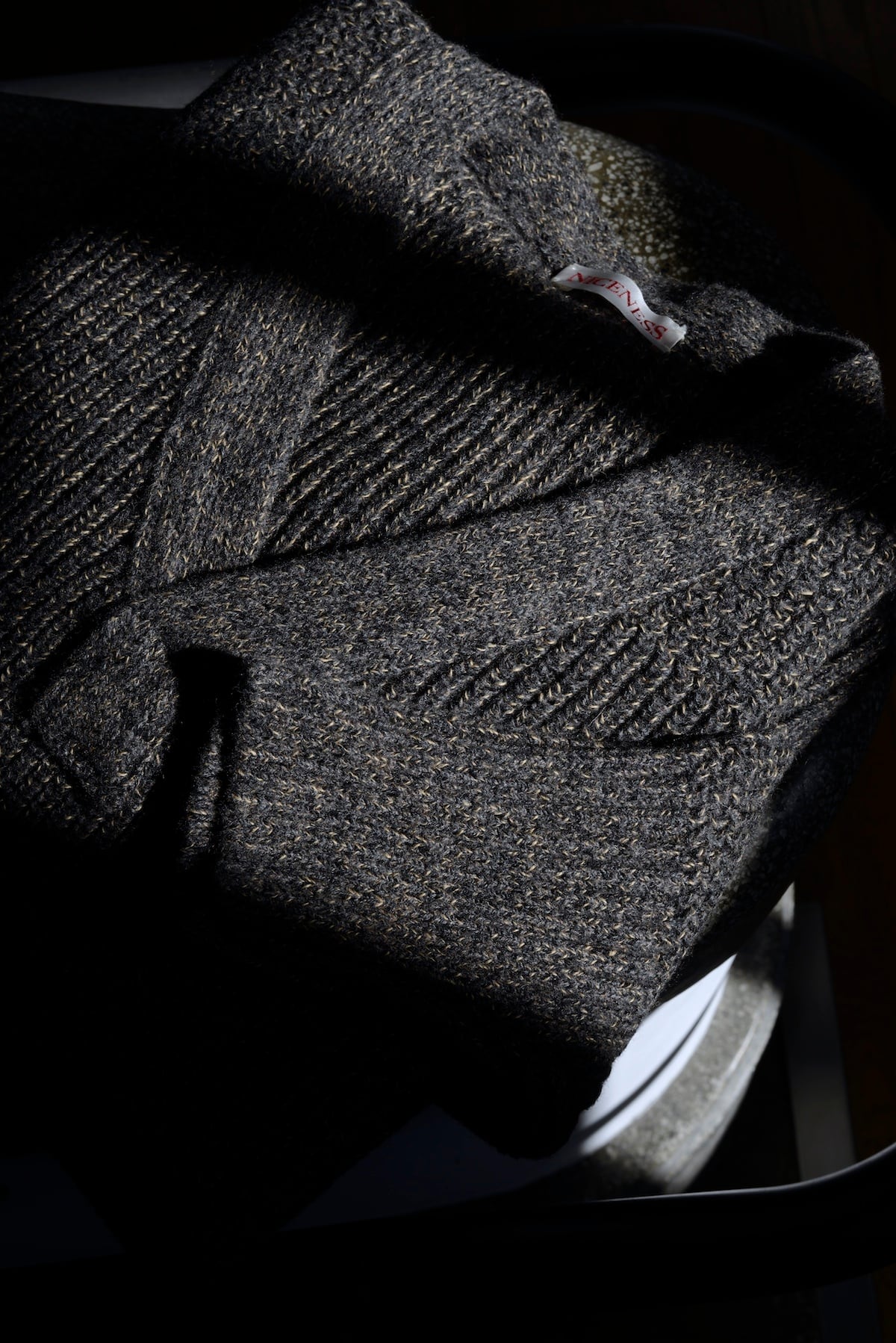 NICENESS / B.BILLIEWOOL CHAMBRAY MECHANICAL BEACH SWEATER(gray)